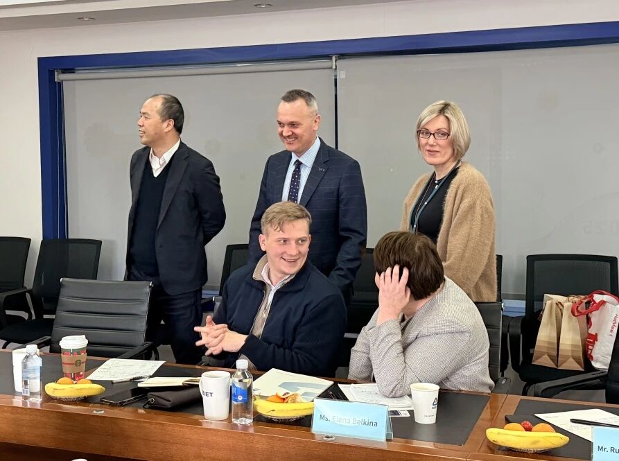 2025年12 月2日上午,俄罗斯DKC公司代表Ruslan Akhmedshin 、Elena Belkina、Olga Kriukova 、Danniel一行四人莅临上海电科智能装备科技有限公司,上电科党委书记王爱国、上电科智能装备总经理安平及其他相关部门负责人齐聚一堂,围绕产品测试认证、试验室建设规划及合作模式等关键议题展开深度沟通,为双方后续深化合作筑牢基础。